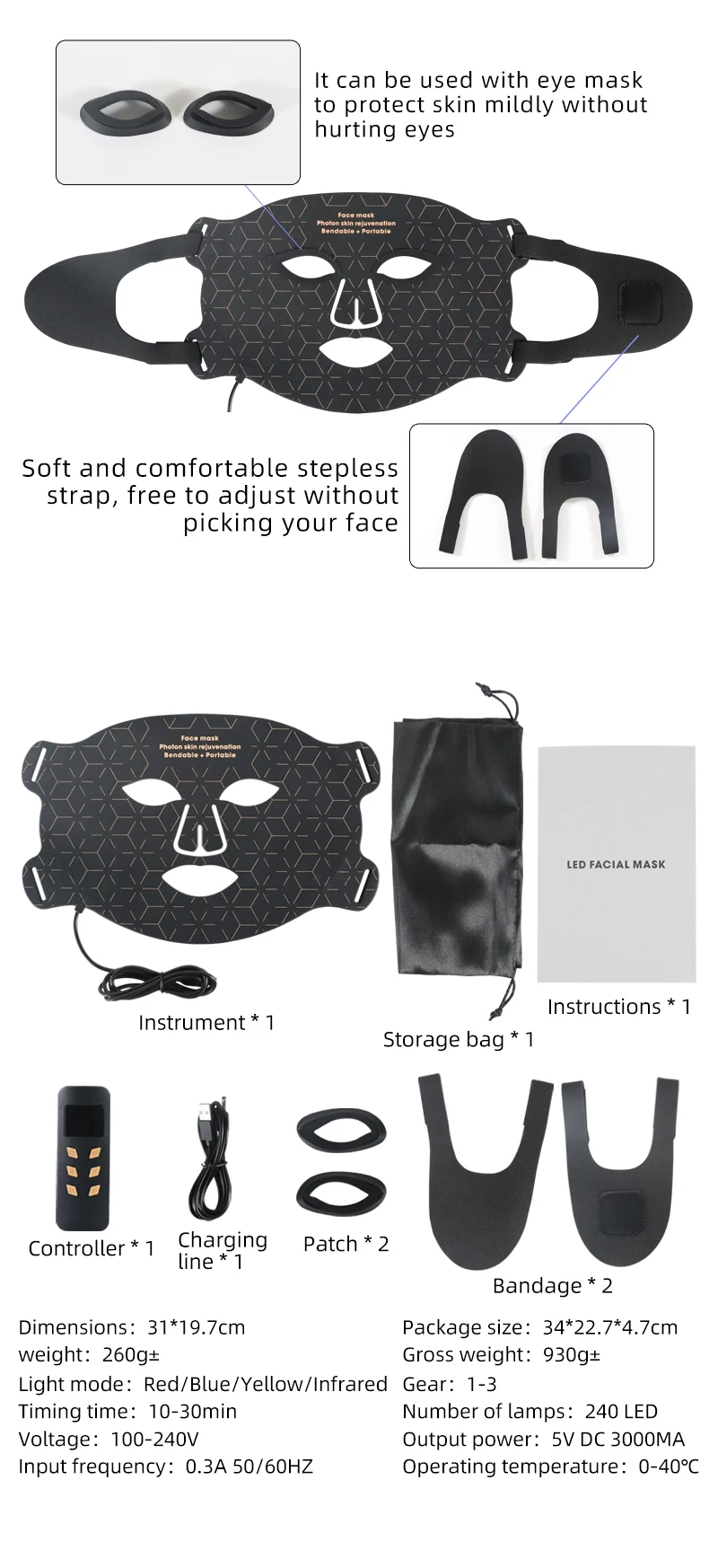Led Facial mask Instrument Silicone Photon Mask LED Infrared 4 color Skin Rejuvenation Beauty
