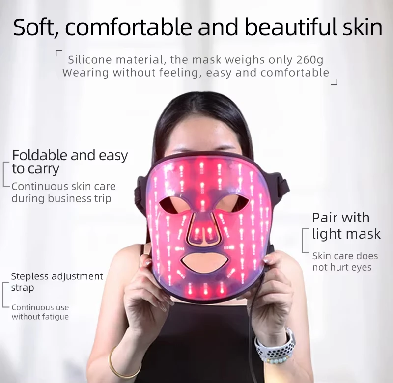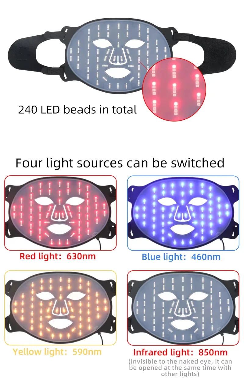 2025 Popular Soft Portable Led Facial Face Mask 4 Colors 460 590 630 850nm Red Light Photon Therapy Skin Care Face Mask