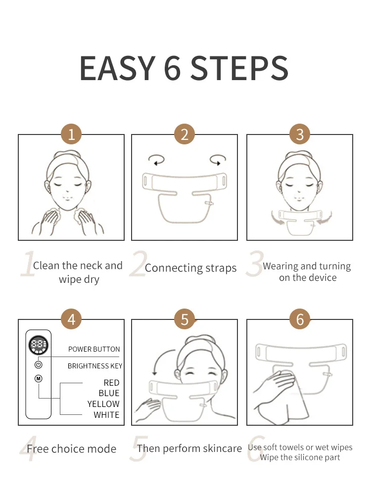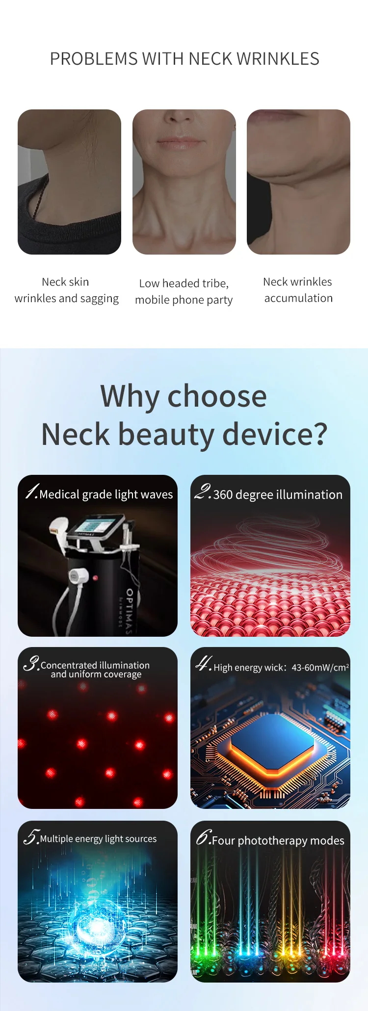 LED Neck Beauty Device,4 Light Therapy Modes, Skin Brightening & Elasticity Boost, 360° Illumination, Easy to Use